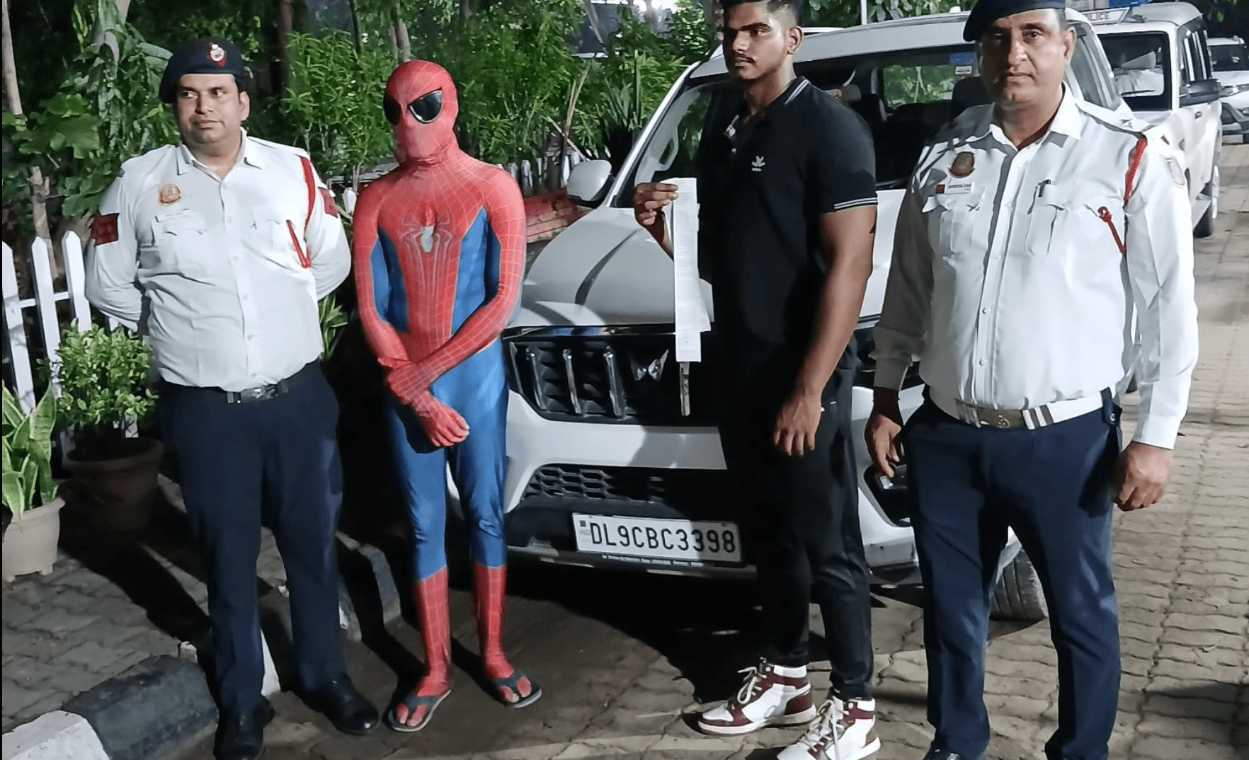 Delhi Police took swift action after visuals of a man dressed in a Spider-Man costume riding on the bonnet of a car went viral on social media.