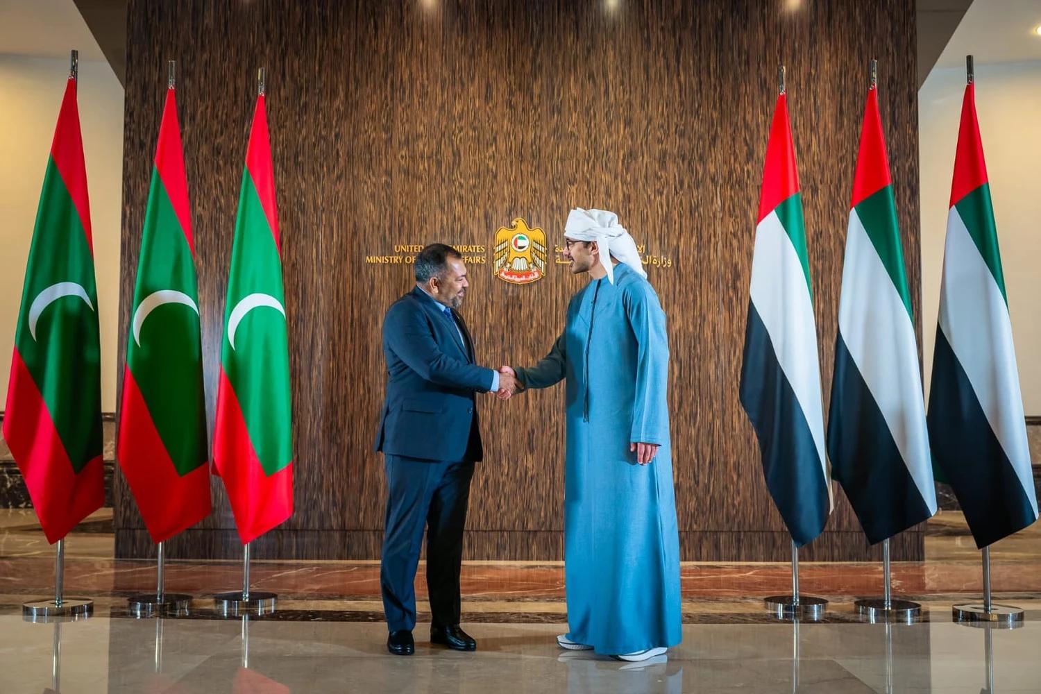 Maldives' Minister of Foreign Affairs, Moosa Zameer, met with the Deputy Prime Minister and Minister of Foreign Affairs of the United Arab Emirates (UAE), His Highness Sheikh Abdullah bin Zayed Al Nahyan, today during his official visit to the UAE.