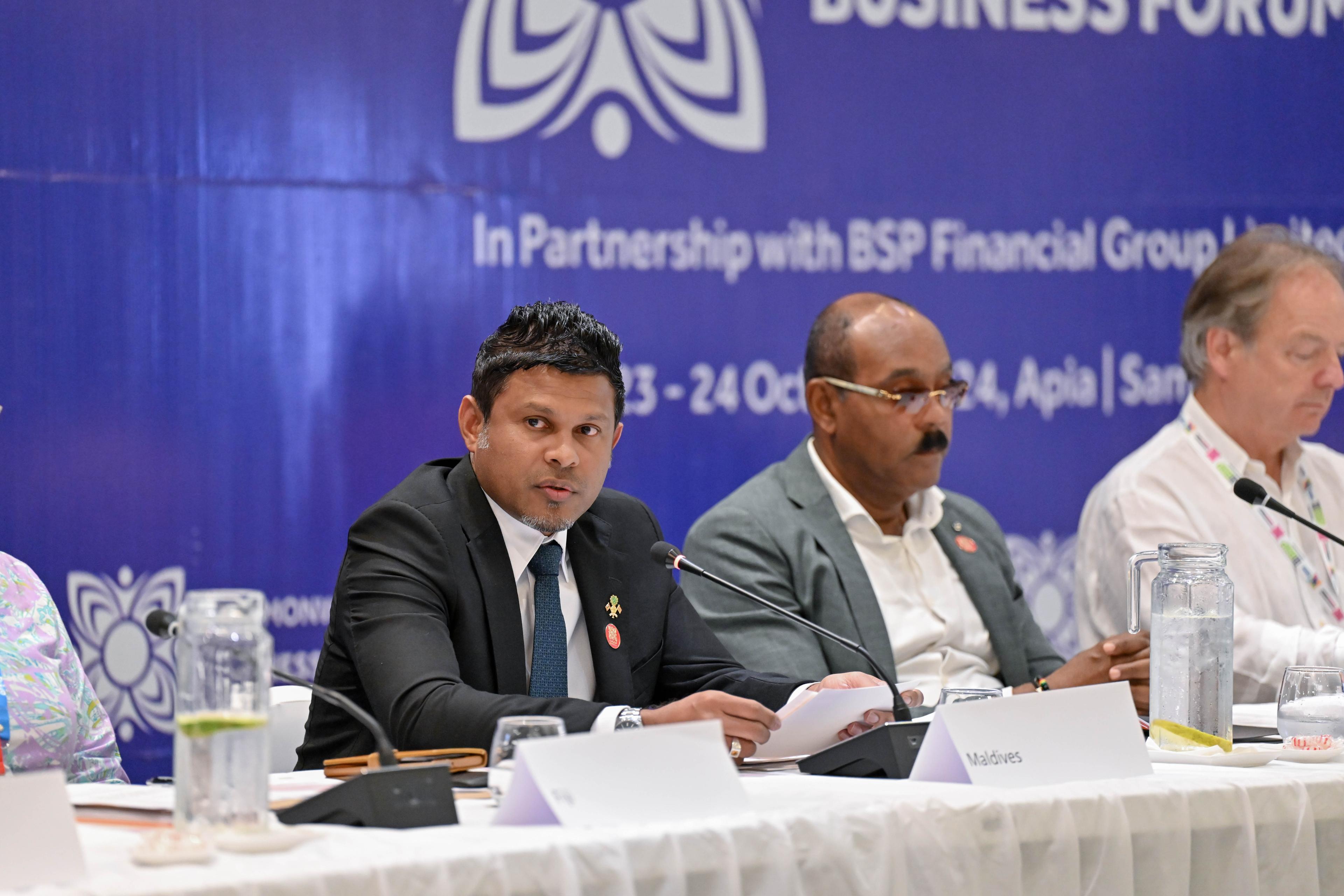 Vice President His Excellency Uz Hussain Mohamed Latheef called for increased private sector engagement in development efforts, emphasizing the need for sustainable collaborations, during his speech at the Commonwealth Business Forum: Island Leaders Round Table. The event was held ahead of the 2024 Commonwealth Heads of Government Meeting (CHOGM) in Samoa.