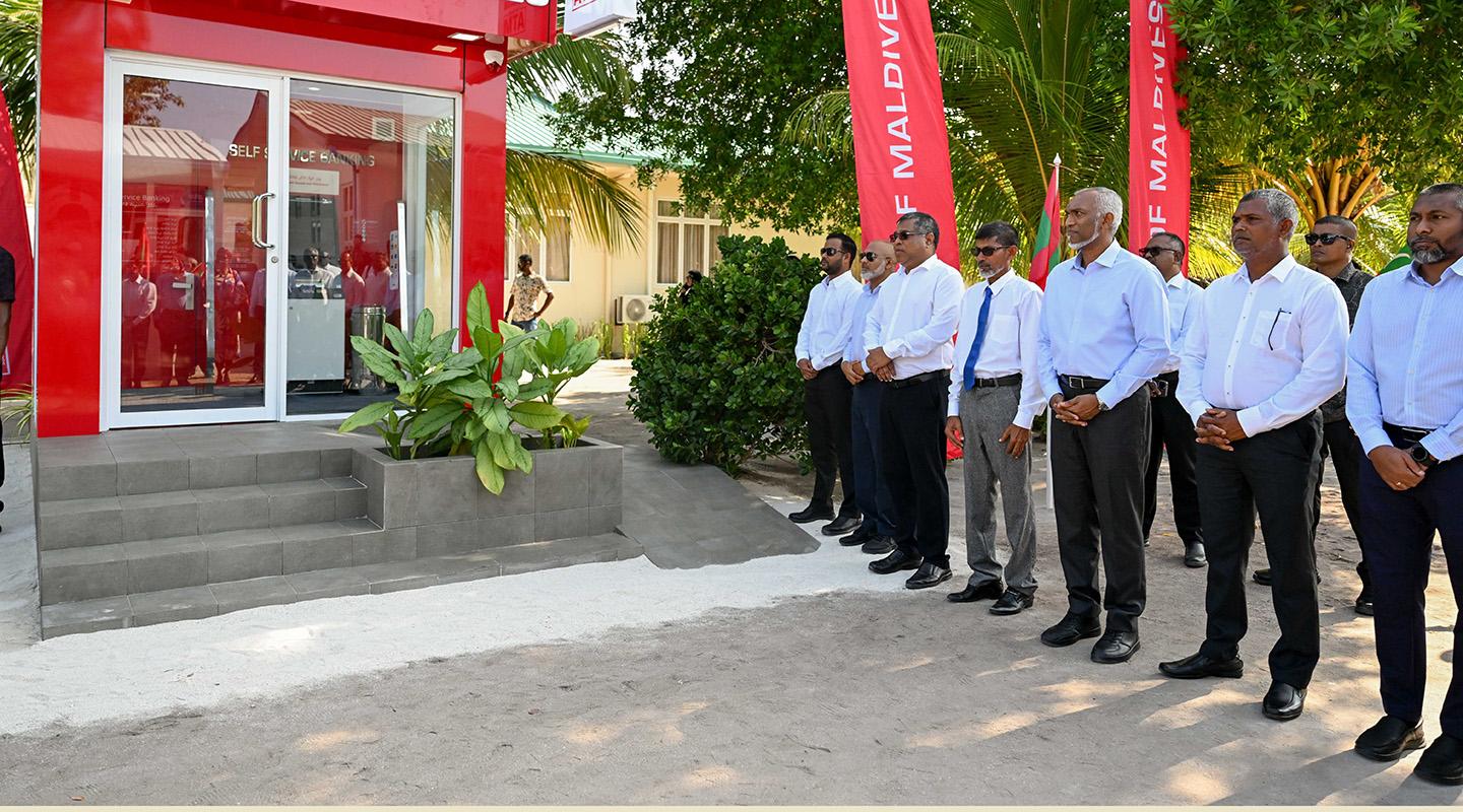 President Dr. Mohamed Muizzu has officially inaugurated a new self-service banking ATM of the Bank of Maldives (BML) in Dh. Maaenboodhoo, bringing a significant improvement to the island’s banking accessibility. The new service is expected to ease financial transactions for residents who previously faced difficulties due to the absence of an ATM.